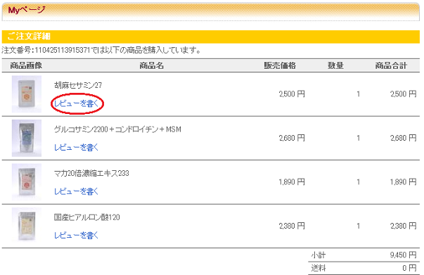 1.「レビューを書く」をクリック!!