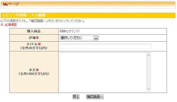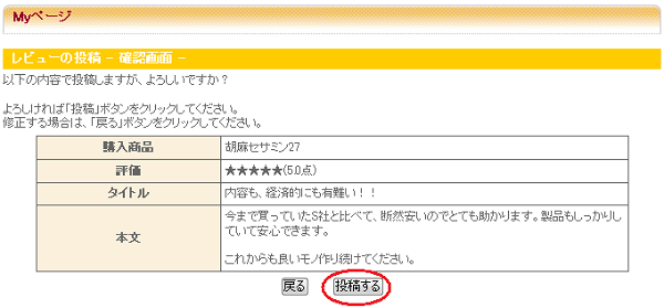 レビューの投稿―確認画面―