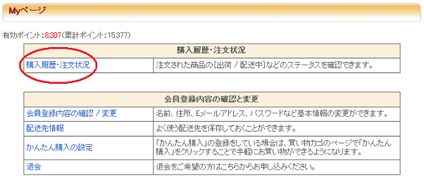 ↑↑購入履歴・注文状況クリックすると