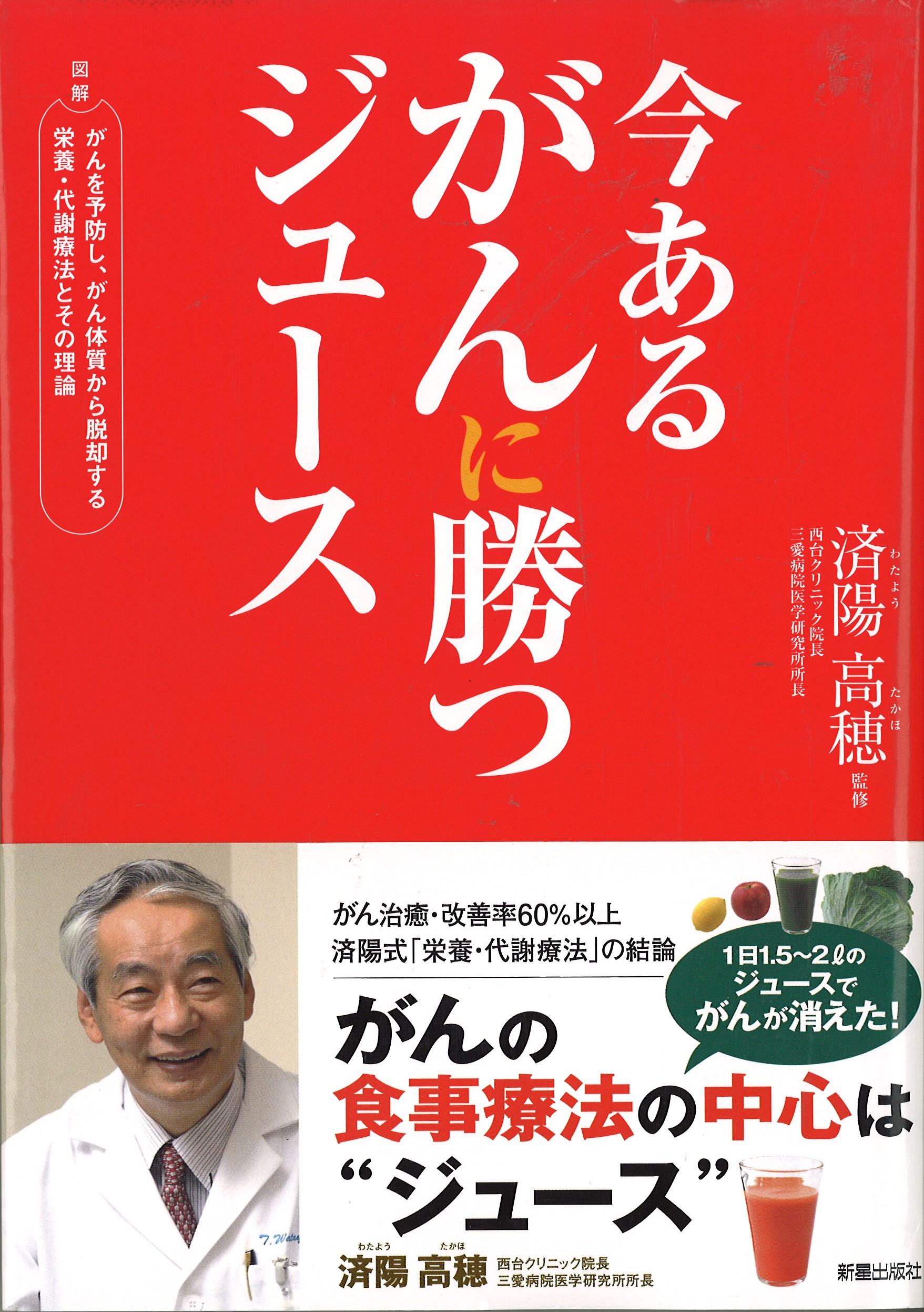 『今あるがんに勝つジュース』や『今あるガンが消えていく食事』などの書籍で有名な【済陽高穂(わたよう たかほ)医学博士】は約2,000例におよぶ癌執刀経験を持つ消化器外科の名医として活躍 しかし手術後の5年間で約半数の患者様が再発され亡くなられていることに驚愕し、もっと生存率を高めるため、十数年をかけて野菜ジュースや縄文食を取り入れる食事指導の結果、60~70%の有効率を確立。済陽式食事療法 縄文式食食事療法、野菜果物ジュースは、ガンはその部位だけの病気ではなく、全身の病気として捉え、全身の代謝を良くする食事療法です。全身の代謝が良くなることで、それぞれのガンが改善していきます。その食事療法とは日本人が昔から食べていた縄文食、特に越冬食にあると考えています。 日本人に癌が増えたのは、動物たんぱく質や脂肪、塩分の多い食事をとるようになったのが原因です。その証拠に日本人の伝統的な和食を見習いはじめた米国でが癌が減っているのに、欧米型の食事が多い日本では癌が急増しています。