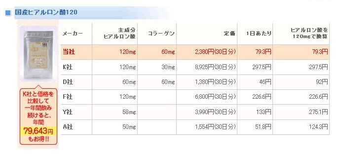 ■国産ヒアルロン酸120(30日分):2,380円(税込)