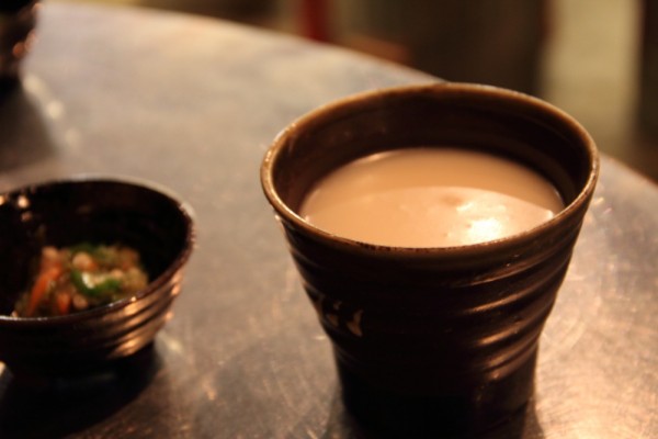 生マッコリは、加熱処理をせず、飲む瞬間まで発酵が続いているため、炭酸飲料のように発砲しているもの。