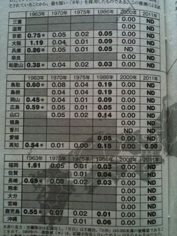 ※空欄部分は記録なし。NDは不検出。「0.00」は0.005未満。2011は6月末までの計算値。