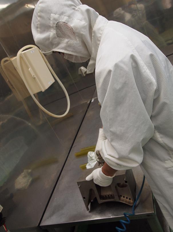 異物混入から大切な部品を壊さない等、細心の注意が必要であり技術者は常に神経を集中して作業に努めており、