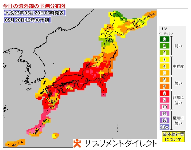 2011年5月20日金曜日の紫外線の予測分布図はこちら