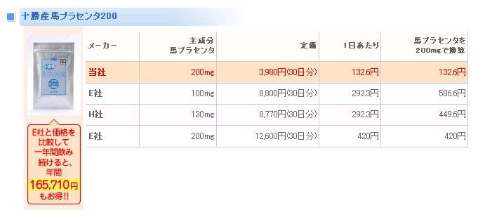 サプリメントダイレクト:ご注文いただき誠にありがとうございます。北海道は十勝の大自然で育った馬の胎盤を水と酵素で抽出したエキスを、弊社の岩手県二戸市にある工場で植物性カプセルに1粒200mgもつめました。どこにも負けない含有量と価格!!ぜひ末永くご使用ください。