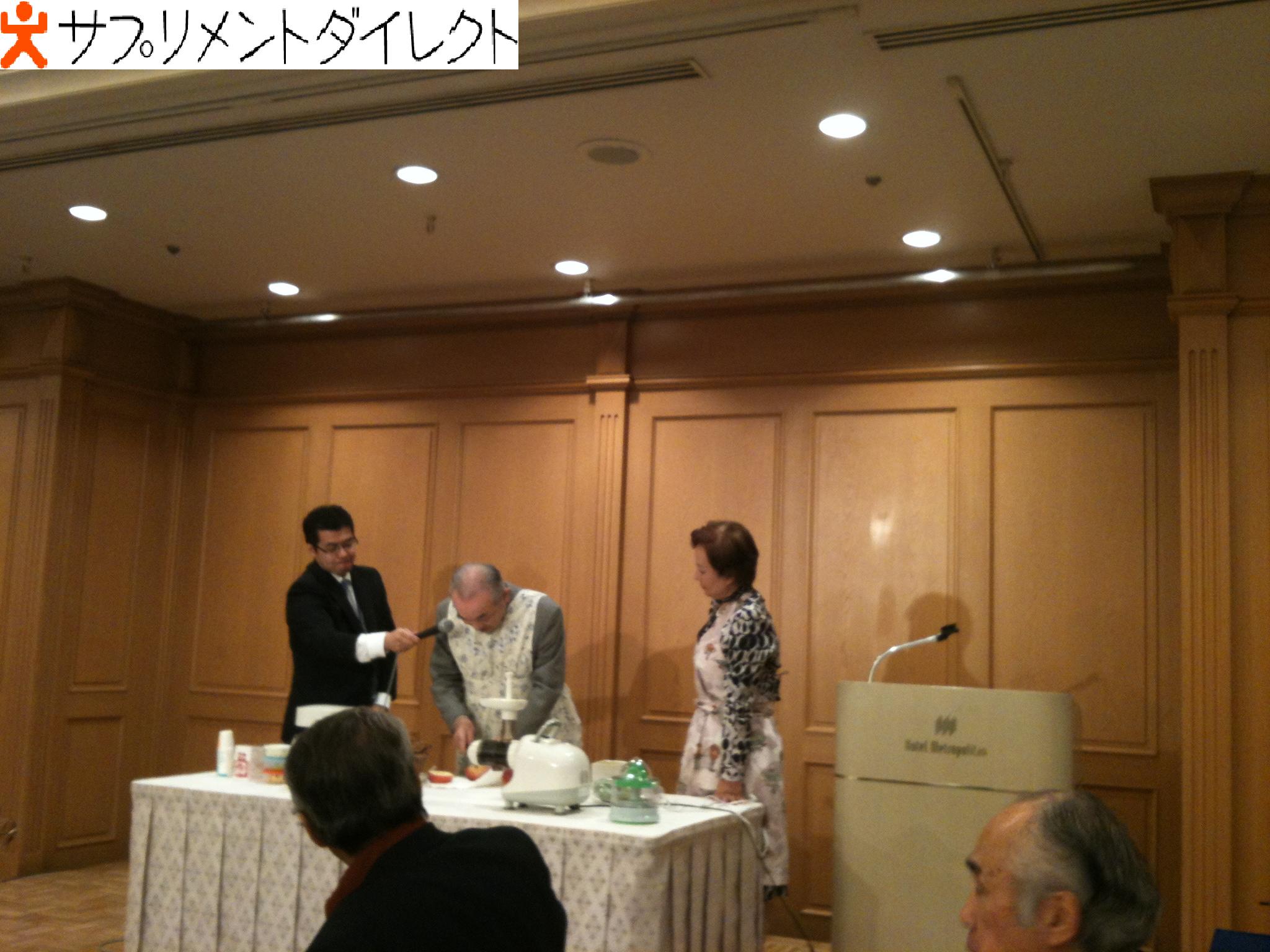 毎朝、奥様のために会長自らがジューサーで野菜林檎ジュースを作らているようです。リンゴを縦に輪切りにして3等分にすると、ジューサーの細い投入口に入れやすいとコツまで^^心温まるジュース作りを披露されました。
