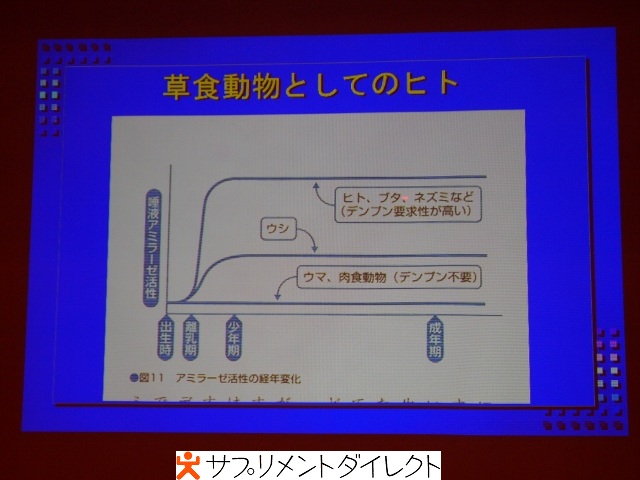 でんぷんを分解する唾液アミラーゼの活性が高い≒草食