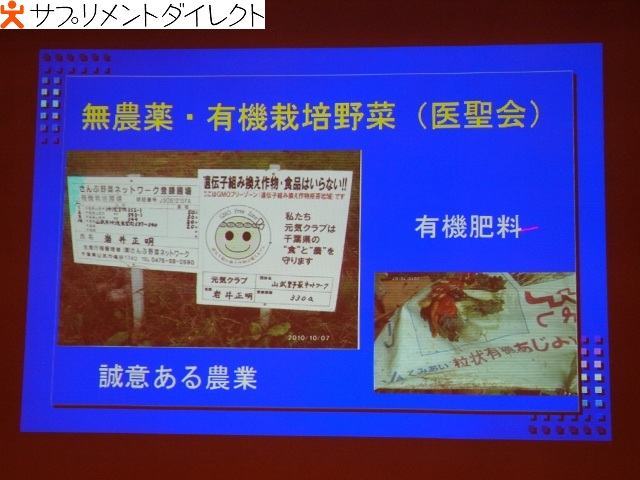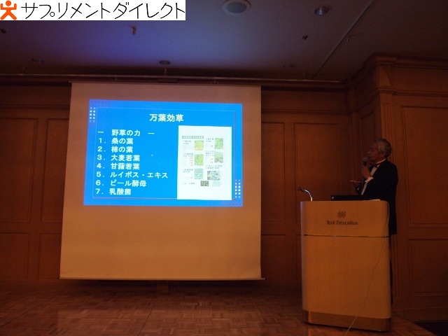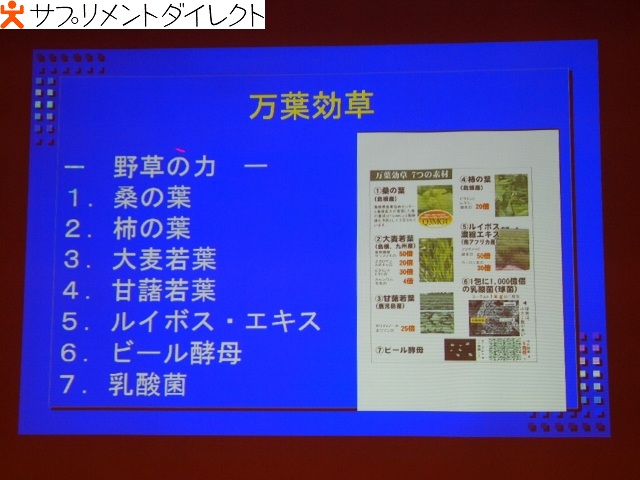 わたよう院長と共同開発した万葉効草の説明。無農薬や有機栽培、食物の栄養素を破壊しない難しい製法