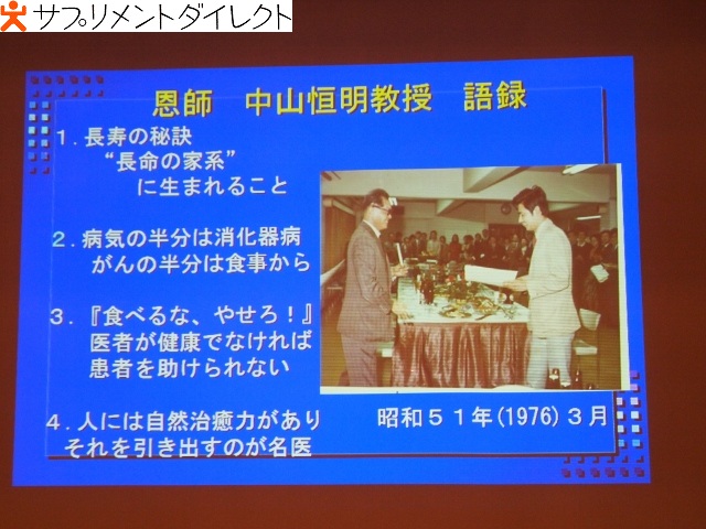 国立千葉大卒でアメリカに渡り、都立病院副院長まで登りつめた外科医が、患者の治療成績をもっと良くするために行き着いた先が食事指導だった。しかし、当時「ワタヨウも血迷ったか、怪しい宗教か」と叩かれた。そんな苦難を乗り越えるキッカケとなったのが、岐阜大前学長である黒木登志夫氏の著書で、癌は生活習慣病だと新聞にも取り上げられたことだと語る。