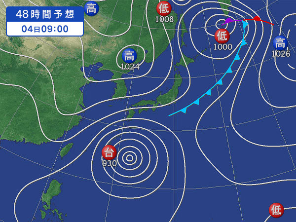 台風18号が北緯20度線を超えて迫ってきています。Yahoo!天気図