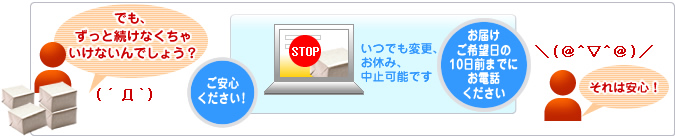 サプリメントは一時的に大量に摂るよりも、継続してお飲みいただくことが何よりも健康維持・増進につながります。そして、弊社としては同じお客様でも、1回しかご購入いただけないお客様より、長く継続していただけるお得意様を、より大切に親切な対応を心がけたい!!、、それが弊社のためにもなります・・・そう考え、定期購入サービスを導入!!