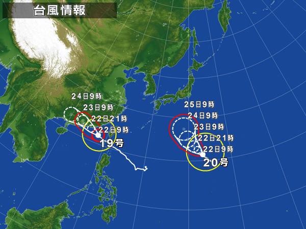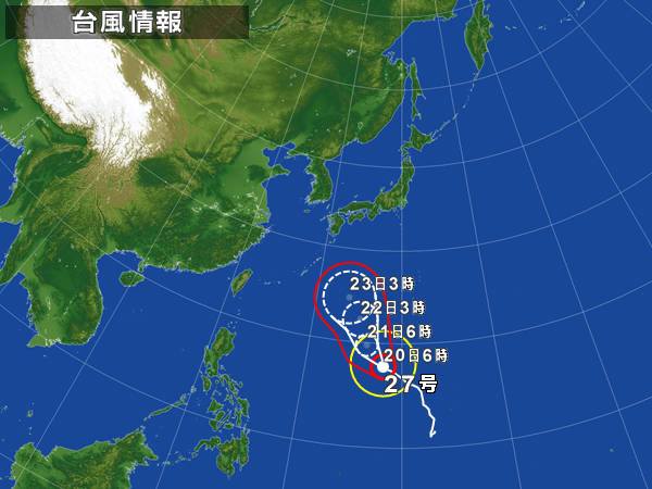 台風26号が伊豆大島に甚大な被害を与えてしまいましたが、台風27号がまた同進路で北上しているようです。yahoo天気図