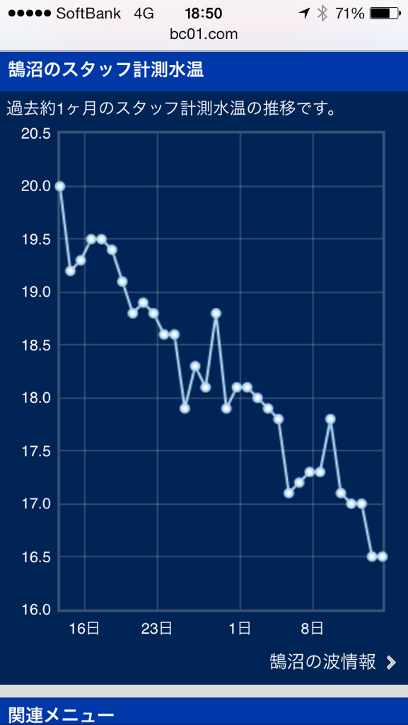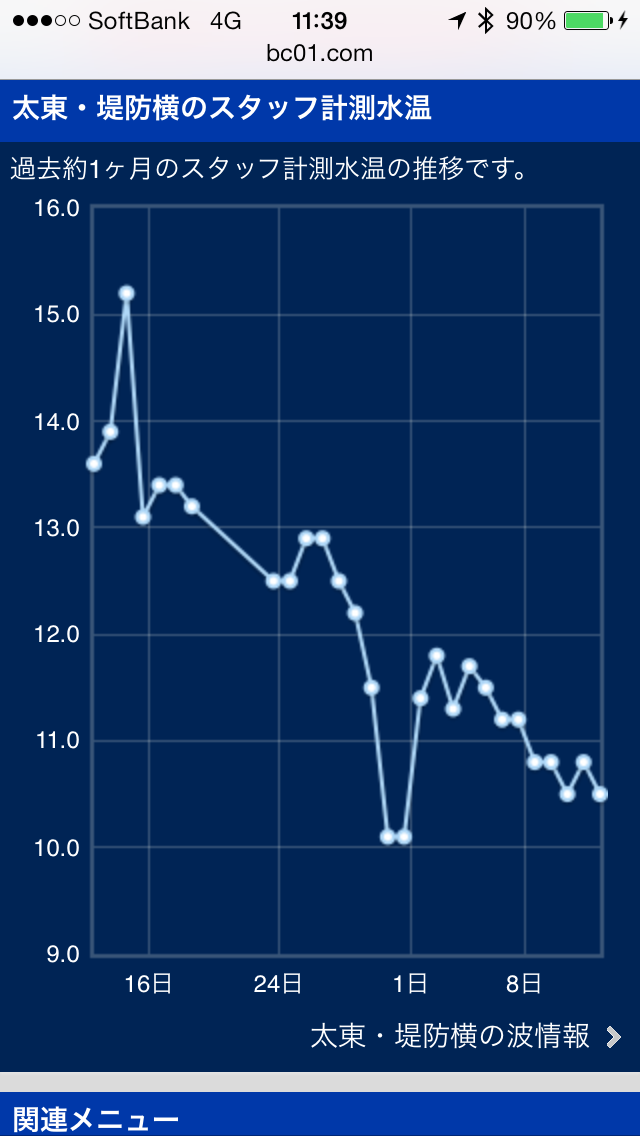 波情報のスタッフさんが自ら計測されている水温はついに厳寒に。