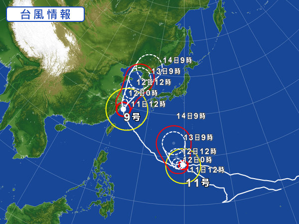9号は日本を通り過ぎ、10号は消滅し、今回は上陸しないから一安心と思いきや11号の進路が怪しいですね・・・(汗)