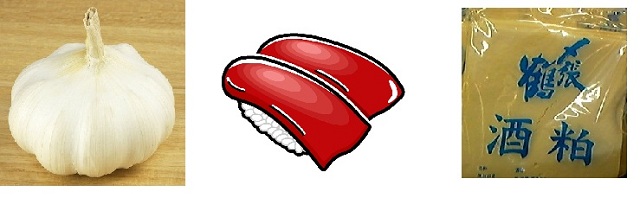 食材としては、マグロ、カツオ、イワシ、牛、豚、鶏レバー。にんにく、胡麻、大豆、落花生、ピスタチオ、唐辛子、バナナなど。