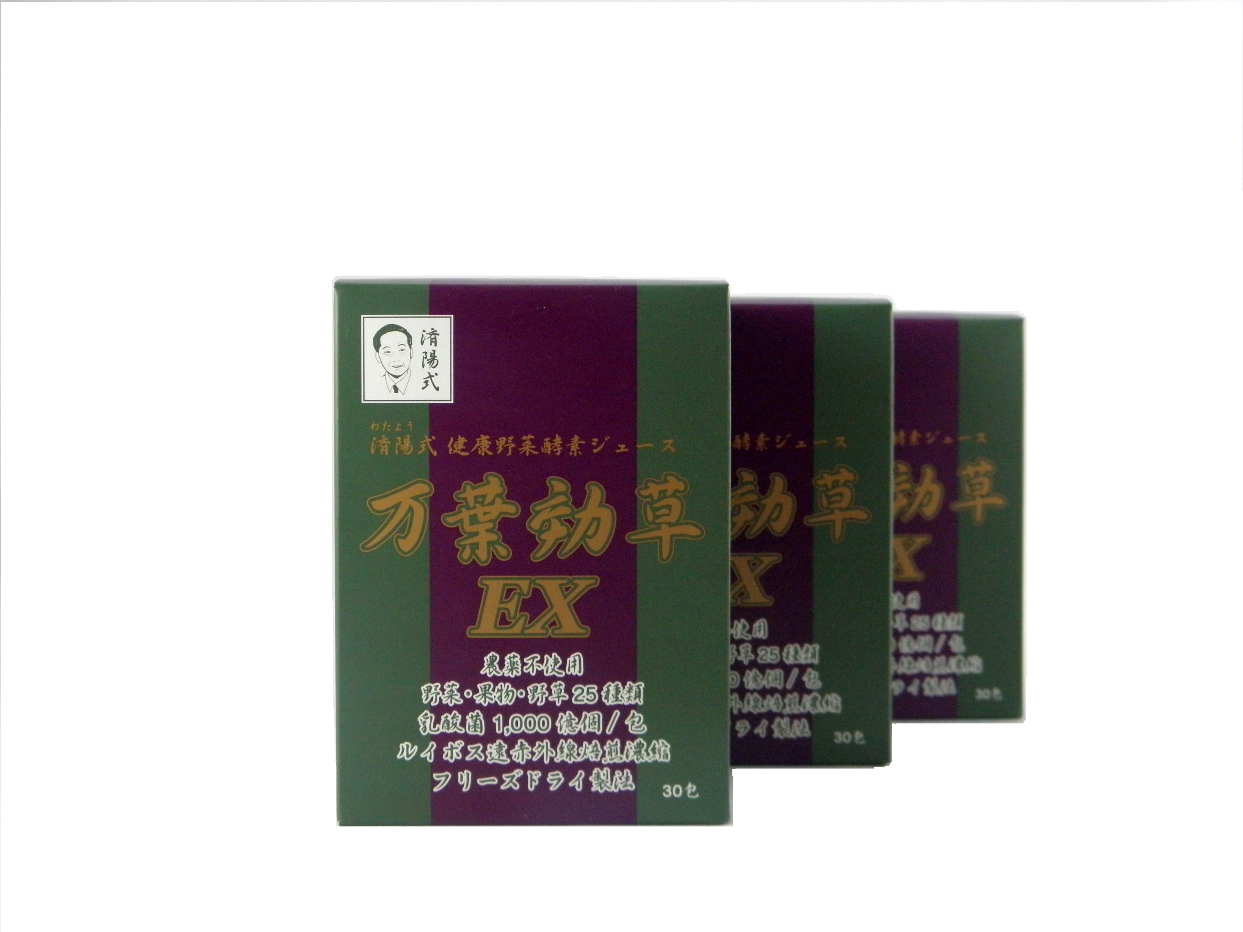 累計100万部のベルトセラー書籍 の著者で、癌外科医なのに食事指導で癌を治すとNHK番組サキどりから雑誌まで数多く取上げられ話題の元東京女子医大学助教授・都立病院副院長で、西台クリニック院長の済陽高穂先生(わたよう たかほ) と共同開発“免疫力を高める無農薬の健康野菜酵素ジュース”【万葉効草EX】。